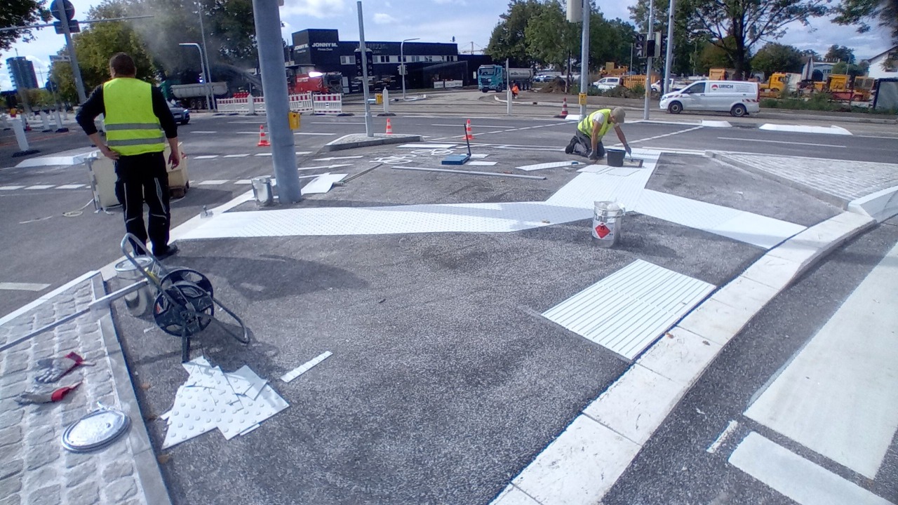 110 lfdm F 15, 69,0 qm taktile Rippenplatten und 62,0 qm Noppenplatetn "REC-ACRYL" aufgeklebt, Wertheim am Main photos.app.goo.gl/b7no4YehbrXCRetS6